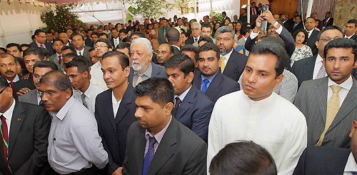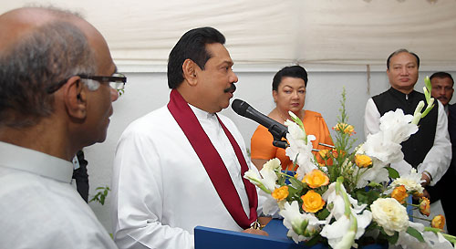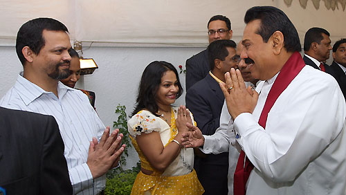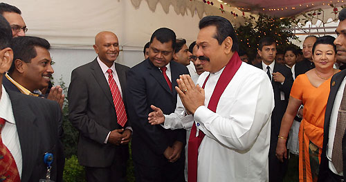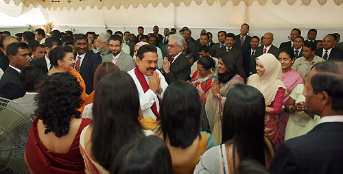 President Mahinda Rajapaksa who is on a three day official visit to Bangladesh met with his countrymen at the Sri Lanka High Commission in Dhaka. A large number of Sri Lankans those who are working and residing in Bangladesh gathered at the High Commission premises to meet the President.