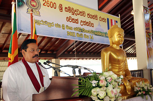 President Mahinda Rajapaksa officially inaugurated the 2600th Sri Sambuddhathwa Jayanthi Year and the Vesak week in Anuradhapura this evening on 14 May 2011. The state ceremony took place on a grand scale in the sacred area premises of the Jaya Sri Maha Bodhi in Anuradhapura. President Mahinda Rajapaksa officially inaugurated the state ceremony. Accordingly, the year starting from the coming Vesak full Moon Poya day to the Vesak Full Moon Day of next year 2012 has been named as the 2600th Sri Sambuddhathwa Jayanthi year. Declaration of the 2011 official Vesak week also took place at this occasion.
