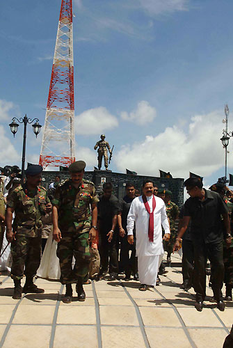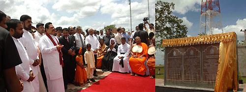 The Telecommunication Regulatory Commission of Sri Lanka (TRC) has spent Rs.450 million to reconstruct the 174 meter high multi-purpose transmission tower which provides the Northern people better access to radio, TV, mobile telephone based communication and Internet facilities after 30 years. Foundation stone to reconstruct the tower was laid in March 2009. The project was jointly launched by the TRC and the Ministry of Mass Media and Information under the instructions of President Mahinda Rajapaksa and full supervision of Economic Development Minister Basil Rajapaksa. The funds for the project were collectively provided by the Telecommunication Regulatory Authority, Sri Lanka Rupavahini Corporation, the Sri Lanka Broadcasting Corporation and the Independent Television Network (ITN). The Sri Lankan Army gave tremendous support to make the project a success. Director General of TRC Anusha Pelpita said new Kokavila tower will be used to introduce digital radio and television transmission using the Digital Video Broadcasting’s DVB-T2 digital terrestrial broadcasting standards which will help to provide high quality and clear television, radio and telecommunication coverage for the entire Northern Province without transmission interruptions after several decades. He further said the tower is to be utilized for TV, radio and telecommunication transmissions as well as military communication operations. The Sri Lanka Broadcasting Corporation, Sri Lanka Rupavahini Corporation and the Independent Television Network commenced test transmissions in last April. However TRC expects to provide space for several private media and telecommunication channels, especially Tamil channel transmission space through this tower. Secretary of the Mass Media and Information Ministry W. B Ganegala who constantly supervised the project said the communication between north and south will be restarted with the reconstruction of the tower. The Kokavila Communication Tower holds an important landmark in the history of war against the brutal terrorism. It was under Kokavila Army camp control and the camp was under constant terrorist attacks. After overrunning Elephant Pass and Kilinochchi, Army camp at Kokavila was isolated. Captain Saliya Aladeniya of the Singha Regiment was the commanding officer at the Army camp with 69 soldiers and other ranking officers. When the camp was surrounded by advancing Tamil Tiger terrorists and came under a barrage of attack, Captain Aladeniya and his men had to defend it for three days. There were heavy casualties on the Army as the LTTE was much superior in number of cadres. Repeated messages for re-enforcement, medicine, food and water were not successful as the terrain was precarious. Due to treacherous weather conditions air support also was not possible. On 11 July terrorists destroyed the tower. The TV and radio transmissions were interrupted for the entire Northern region once the tower was destroyed. The bravest of brave men under the leadership of Captain Aladeniya held the camp for three days despite heavy casualties. On July 13 when the Tamil Tigers were approaching, Captain Aladeniya sent his last message to the Air Force to destroy the camp to prevent them from falling into the Tamil Tigers which the Air Force obliged with a heavy heart. Captain Aladeniya and his brave men were honoured posthumously later and Captain Aladeniya was conferred with the highest military accolade Veera Vickrama Vibhushana Seva. Kokavila was re-taken on 01 December 2007 during the final Eelam War after 18 years by an Army battalion led by Lt. Udyanga and Lt. Ratnayaka. President Rajapaksa also unveiled a special war memorial to pay tribute for the fallen heroes at Kokavila. The president also placed a floral tribute to commemorate captain Saliya Aladeniya and other war heroes who sacrificed their lives to safeguard the tower. Ministers Keheliya Rambukwella , Ranjith Siyamabalpitiya , Douglas Devananda, many parliamentarians, Governor of the Northern Province, Major General G.A. Chandrasiri, Governor of the North Central Province, Karunarathna Divulgane, Director General of Telecommunication Regulatory Commission, Anusha Pelpita, Secretary to the President Lalith Weeratunga, Defence Secretary Gotabhaya Rajapaksa, Secretary to the Media Ministry W.B. Ganegala, Chief of Defense Staff Air Wing Marshal Roshan Gunathilaka, Army Commander Lieutenant General Jagath Jayasooriya, Acting I.G.P. N.K. Ilangakoon, Provincial politicians of the Northern Province and a large number of people of the Northern Province were present at the ceremony. Pix by: Chandana Perera