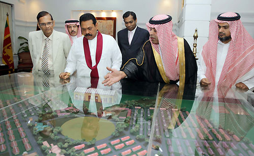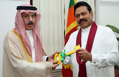 Abdul Azeez Al-Jamaz, Saudi Envoy for Sri Lanka and Maldives handed over the symbolic key to President Mahinda Rajapaksa for the 500 tsunami houses which the Kingdom of Saudi Arabia built in the eastern province in Sri Lanka. The Saudi government handed over the ownership of those houses through its Ambassador in Colombo at Temple Trees today on 09 June. Governments of Saudi and Sri Lanka signed a MOU in 2006 to build 1000 houses for 2004 tsunami victims in the east. These 500 units are a part of the houses pledged by Saudi government for tsunami hit people.