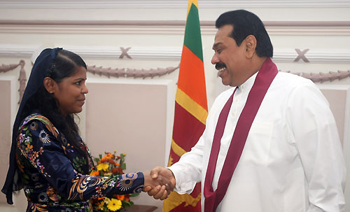 The newly-appointed Secretary General of South Asian Association for Regional Cooperation (SAARC) Ms. Fathimath Dhiyana Saeed of Maldives paid a courtesy call on President Mahinda Rajapaksa at Temple Trees today on 22 June. Minister of External Affairs Prof. G.L Peiris, Foreign Secretary Karunaratne Amunugama, Director General of President's Media and spokesman Bandula Jayasekera and Senior Officials of the Ministry and the SAARC were also present.