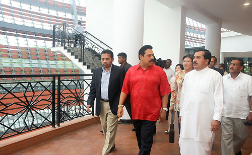 President Mahinda Rajapaksa inspected the Sri Lanka’s National Performance Arts Theatre constructed in the old Colombo Municipal Council grounds at Ananda Coomaraswamy Mawatha in Colombo with financial assistance from China on 27 June. This five storied theatre which is the largest in Sri Lanka and the South East Asia is another monument of the China – Sri Lanka close friendship.