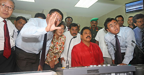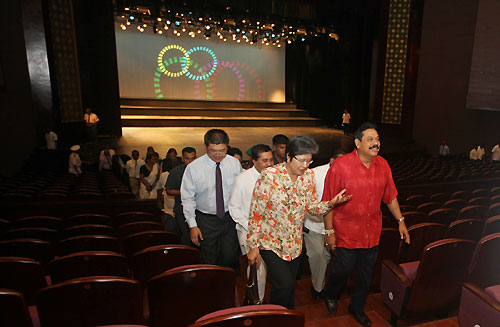 The newly constructed modern theatre has been built on a model similar to the ancient Lotus Pond of Polonnaruwa. The main theatre has seating capacity for 1288 spectators and an open theater is on the top floor. With the expertise from China, the Chinese engineers engaged in the construction work screened a documentary to the president showing construction activities of the building from the very inception. The President also inspected the open air theatre on the top floor. The cost of the theatre amounts to 3,080 million rupees and China has financed a grant to cover 60% of the expenditure of this project, and agreed to bear the balance 40% of the cost. Foundation stone for the construction of this Performance Arts Theatre was laid in November 2005. Prof. G.L. Peiris, External Affairs Minister, P.B. Ekanayaka, Cultural Affairs Minister, Ms. Yang Xiuping, Chinese Ambassador to Sri Lanka, Secretary to the President Lalith Weeratunga, President's Chief of Staff Gamini Senarath and the Permanent Representative to the UN Dr Palitha Kohona were also present at the occasion. Pix by: Chandana Perera