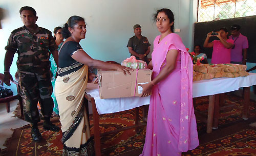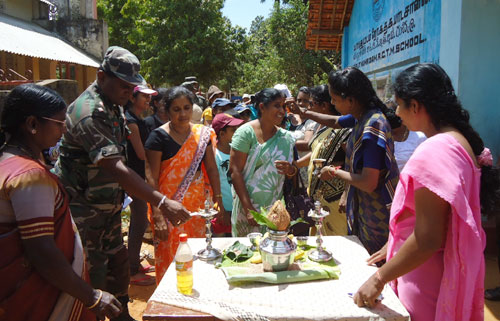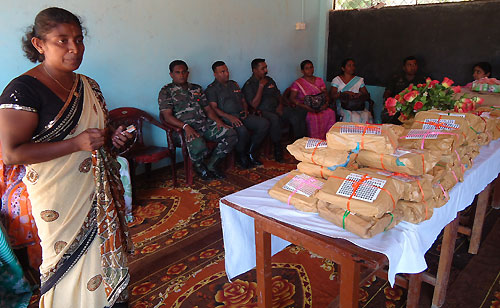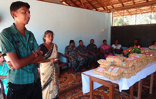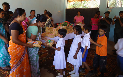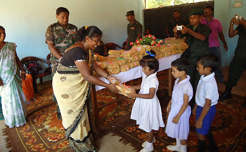 Twenty teachers and sixteen students of Army School in Panagoda, together with some of their family members, as a goodwill token of new friendship presented parcels of books and other school items to students at Puthumadam R.C. Primary School at a simple ceremony held at the school premises. They also donated some office equipment to the school. Principal of the Puthumadam RC School, Mrs. S. Sooriyarajan told that the students of her school had a memorable day in their school’s history with their counterparts of Army school in Panagoda. She further added that it was a clear sign that the students had built up strong links between them. Principal of Panagoda Army School Mrs. Sriyani said that having identified needs of their fellow students at Puthumadam RC School- Inuvil, the students of her school in Panagoda guided by their teachers and parents, donated a stock of books, school items and sportswear to Puthumadam RC School. She further stated that they were received with a warm welcome on their arrival at Puthumadam, Jaffna. General Officer Commanding 51 Division Major General Janaka Walgama participated in the ceremony as the Chief Guest and said after eradicating thirty years of terrorism students of the Southern part of the country have commenced stretching cooperative hands towards those in the North and East in a major friendship-building exercise which was introduced by the Army. So far they have organized hundreds of such events for last two years. Thus, friendship and cordiality between the young of the North and South will get an opportunity to bloom, after 30 years. Principal of Panagoda Army School Mrs. Sriyani, principal of Puthumadam RC Primary School Mrs. S. Sooriyarajan, senior Army officers and parents were present on the occasion. The visit was organized by the 513 Brigade of the Security Forces Headquarters - Jaffna as another event of their civil military coordination programme. For more information, the author can be reached at (email): alahapperumaj@yahoo.co.uk