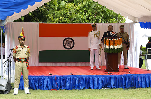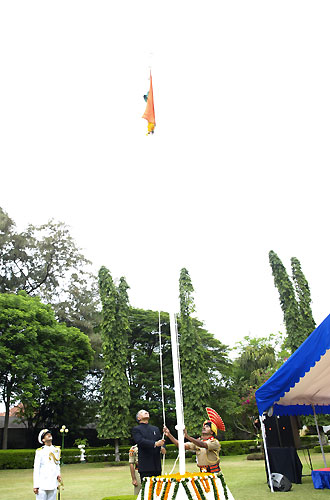 The High Commission of India and the Indian expatriate community in Sri Lanka celebrated the 65th Independence Day of India on Monday, 15th August at India House in Colombo. High Commissioner Ashok K. Kantha unfurled the National Flag, which was followed by rendering of the National Anthem by the lady officials of the High Commission and the Indian community. The High Commissioner inspected the Guard of Honour presented by the BSF contingent and read out excerpts from the Address to the Nation on the eve of Independence Day by the President of India, Mrs. Pratibha Devisingh Patil.