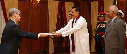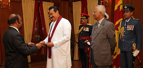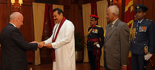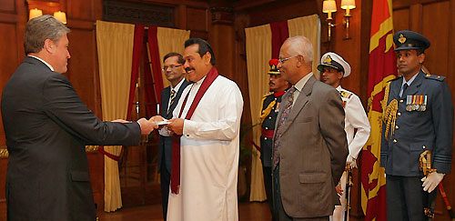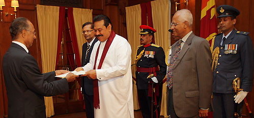 Six foreign envoys including five Ambassadors and a High Commissioner, presented their credentials to President Mahinda Rajapaksa at a ceremony which was held at the Presidential Secretariat today on 22 August. The envoys who presented their letters of credence were