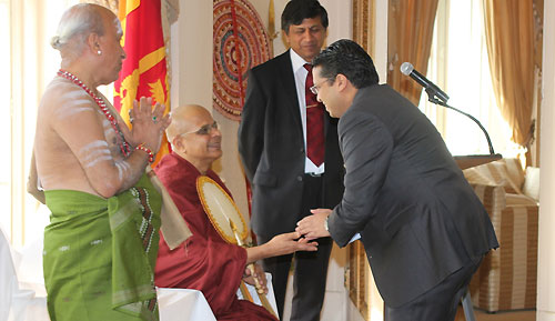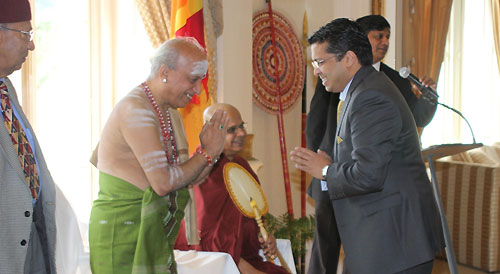 He studied medicine at the Royal Free Hospital Medical School, University of London and also obtained a First Class Honours Degree from Imperial College, London. He spent his electives at Harvard Medical School Boston, USA and completed his postgraduate studies at Addenbrooke’s Cambridge, Brompton and Hammersmith, and obtained his M.R.C.P. (UK). He has lived and worked in both countries, in the public health sector in the UK , academia, international and civil society organisations, and the private sector. He was appointed as the Deputy Chairman of the Royal Commonwealth Society (RCS) in 2008, and is the first Sri Lankan to hold this office in the RCS’ 140-year old history. At the time of his being chosen as the Sri Lankan envoy to the UK and Ireland, Dr. Nonis was functioning as the Chairman of the Mackwoods Group of Companies, which was established in 1841. Welcoming the new High Commissioner, Mr. P.M. Amza, the Acting High Commissioner said that Dr. Nonis would bring in a wealth of experience, gathered over the years working in different areas ranging from international business to international affairs. He recalled Dr. Nonis’ long- term association with the Royal Commonwealth Society, and expressed confidence that his broad experience in multiple sectors in both countries will be of immense help in furthering Sri Lanka – UK bilateral relations at this important juncture. Upon assumption of duties, High Commissioner Dr. Nonis said he would be committed to further enhance and strengthen the bonds between the two countries, building on their shared commonality of values. He commented that his diverse background developed in him an understanding and respect for the dignity and diversity of people irrespective of their background, and that it has also taught him a degree of empathy and sensitivity and a broader perspective of life. Making specific reference to the conducive macroeconomic environment and emerging opportunities in post-conflict Sri Lanka, he said he would also attach importance to economic diplomacy while working closely with the host government towards greater collaboration and cooperation in all other areas of mutual interest. Multi-faith religious observances by the Buddhist, Hindu, Islam and Christian priests were conducted to invoke blessings for the New High Commissioner and for peace and prosperity in Sri Lanka. Submitted by: Janaka Alahapperuma
