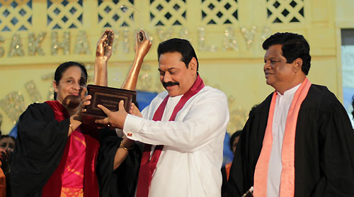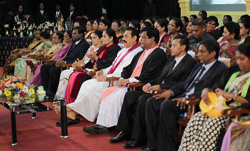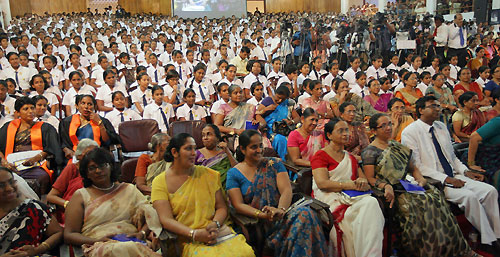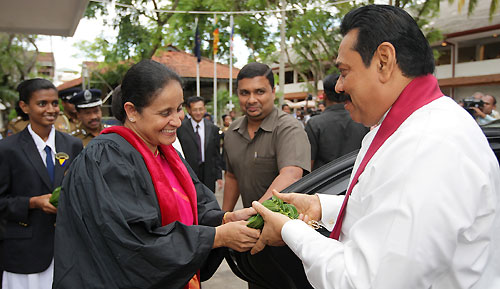 President Mahinda Rajapaksa graced the annual prize giving ceremony of Visakha Vidyalaya, one of the oldest Buddhist prestigious girls’ schools in Sri Lanka which was held at the school premises on Friday 04 November. The President participated the ceremony as the chief guest. He was warmly welcomed by the Principal of the school, Mrs. Sandamali Aviruppola at the school’s main gate and later was guided to the school main hall from a colourful procession headed by school Western and Eastern music bands.