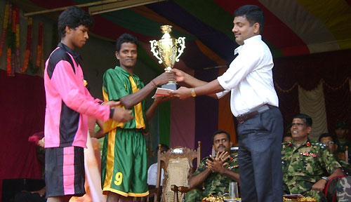 Annual inter club sports tournament organized by the Sri Lanka Army Civil Affairs Office of the 513 Brigade at Uduvil, Jaffna concluded recently with the finals of the tournament and presenting of awards and certificates to the winners at Sellamuththu ground, Manipay.