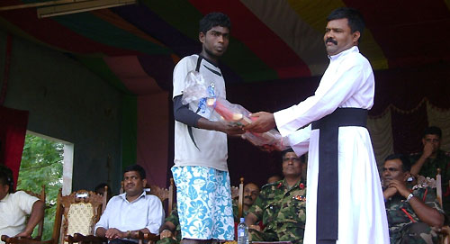 This is the third consecutive year that the Sri Lanka Army organised the event for Jaffna youths after elimination of terrorism. Initially the Sri Lankan Army provided sports equipments for Jaffna youths to form sports clubs in the aim of developing sports and talents in the area few years back. During the dark era they were denied from any sports tournaments in Jaffna and could not enjoy the freedom. However this year it was a huge success that all together seventy eight sports clubs representing Jaffna youths participated the competition in football, cricket and volleyball. Forty three cricket teams, twenty football teams and fifteen volleyball teams took part in the preliminary rounds of the tournament and two teams from each game were selected for the finals. Mahathma Sports Club-B of Anaicoddai won the CIMIC-Munchee Volleyball Cup while their A team became the runners up. Anna Sports Club of Araly won the CIMIC-Munchee Football Cup by defeating Kalaimagal Sports Club of Alaveddy at the finals. Meanwhile, Sri Murugan Sports Club of Mallakam became the CIMIC-Munchee Cricket champions trouncing AB Sports Club of Inuvil in the finals. L. Anithan of Mahathma SC-B Team, N. Hariharan of Anna SC and S. Puhitharaj of Sri Murugan SC were awarded as the best players’ trophies respectively in volleyball, football and cricket. At the same time, six teams, two from each game that qualified for the second round were also presented sports items and certificates. Ceylon Biscuits Ltd. (Munchee) sponsored the tournament and provided all gifts given to winners. Rev. Maheshwaran Kurukkal of Suthumalai Muththumari Amman Kovil, Rev. Fr. I. Rajkumar of Uduvil Catholic Church, Rev. Fr. S. Anthony of Kokuvil Catholic Church, General Officer Commanding 51 Division Brig. Piyal Wickramarathne, Thelippalai Divisional Secretary Mr. S. Muralitharan, Santhilippay Divisional Secretary Mrs. S. Yoganayagam, Munchee Marketing Supervisor for the Northern Province Mr. S. Thayalan and a large crowd of civilians participated in the event. After the prize giving ceremony, a grand musical fiesta was organized by the 513 Brigade at the same venue in the evening. Music group of the 9th Battalion of Sri Lanka Sinha Regiment (9 SLSR) played at the evening show and Army soldiers, girls and boys in the area showed their talents of singing and dancing. Jaffna youths commented and expressed their sincere gratitude towards the Government of Sri Lanka and the Army for providing them all the facilities and opportunity to compete among themselves in sports. They also said that they are willing to participate island wide competitions in the near future to develop their skills and talents which they were deprived by evil motives of tiny minority for their personal gains for three decades. For more information you can reach the author at: alahapperumaj@yahoo.co.uk