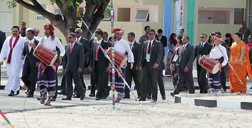 The 17th South Asian Association of Regional Cooperation (SAARC) state leaders’ summit organized at the Hithadhoo Conference Centre in Addu island will be held for two days from 10th to 11th November. The 17th Summit themed 'Building Bridges' is expected to review the progress in the implementation of the decisions taken in earlier Summits. Meanwhile, the SAARC foreign ministers’ meeting was kicked off today prior to the summit. Minister of External Affairs professor G.L. Peiris is already in the Addu city to attend the summit. They will focus attention on the agendas prepared for tomorrow’s summit by the SAARC Standing Committee and the SAARC programme committee which met last two days. President Rajapaksa is addressing the Summit on November 10th, the first day of the Summit. He is also scheduled to hold bilateral talks with his regional leaders on the sidelines of the Summit. The Sri Lankan delegation is comprised of First Lady Shiranthi Rajapaksa, Minister of Power and Energy Champika Ranawaka, parliamentarians Sajin Vaas Gunawardene, A.H.M. Aswer, Kamala Ranathunga and President’s Secretary Lalith Weerathunga. The SAARC was created in 1985 in Dhaka with seven members, including Bangladesh, Bhutan, India, Nepal, Maldives, Pakistan and Sri Lanka. Afghanistan joined the regional cooperation in 2007. Cooperation in SAARC is based on respect for five principles of sovereign equality, territorial integrity, political independence, non-interference in the internal affairs of Member States and mutual benefit. Sri Lanka held the Chairmanship of the Summit from August 2008 to April 2010. Meanwhile the Maldivian government has finalized all necessary measures to hold the 17th SAARC state leaders meeting in very grand scale tomorrow. Sri Lanka plays a major role in providing security in the summit. STF has been deployed for the VIP security. Pix by: Sudath Silva