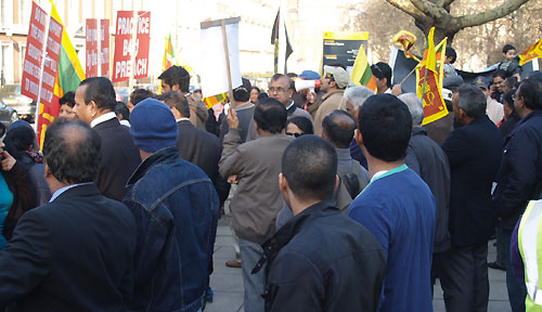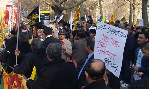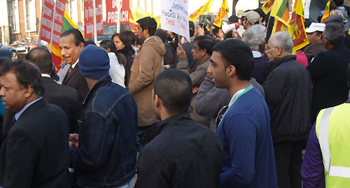 Hundreds of Sri Lankans converge in front of USA Embassy in London