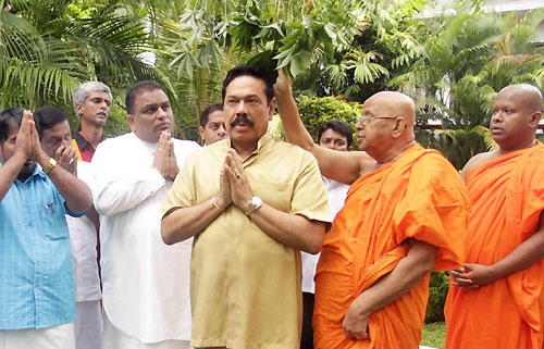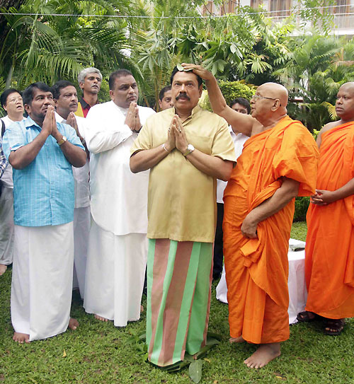 President Rajapaksa participates in the traditional oil anointing ceremony in Tangalle