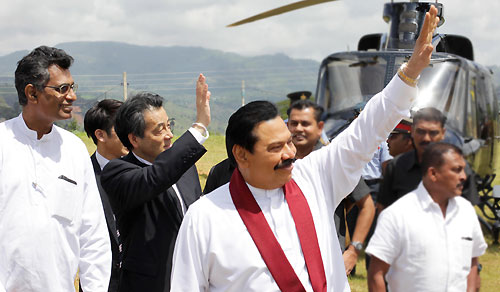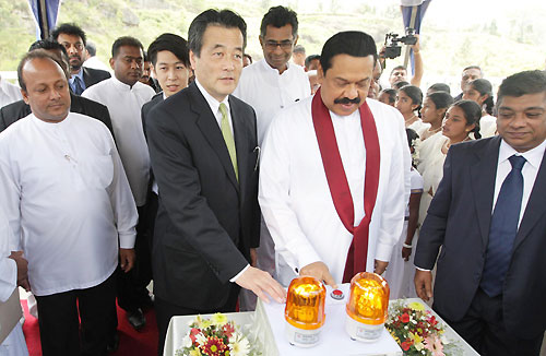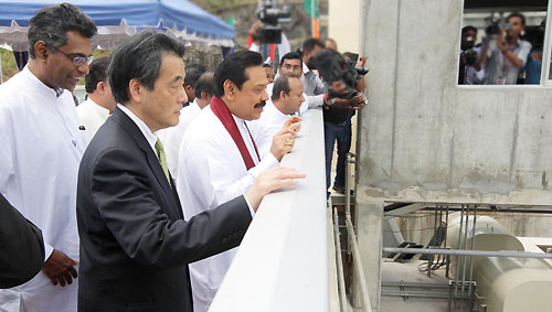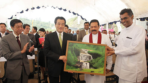 President Mahinda Rajapaksa and Japanese Deputy Prime Minister Katsuya Okada engaged in an inspection tour of the 150-megawatt Upper Kotmale Hydro Power Project this morning on 05 May. The power plant project was launched in 2006 with financial assistance from the government of Japan.