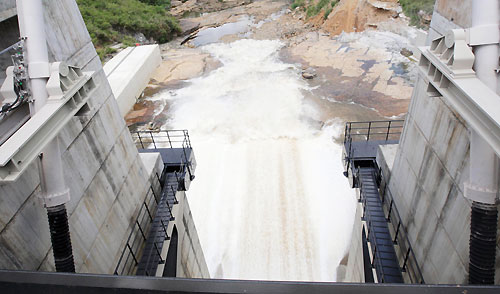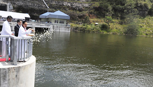 Sluice gates of the Upper Kotmale Hydro Power Project declared open by President Rajapaksa