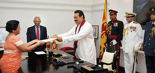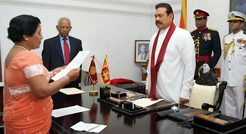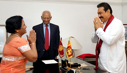 Attorney General Mrs. Shanthi Eva Wanasundara was sworn in as a Justice of the Supreme Court before President Mahinda Rajapaksa at Temple Trees today on 05 July. Secretary to the President, Lalith Weeratunga, representatives from armed forces and family members of Mrs Wanasundera were present at the occasion.