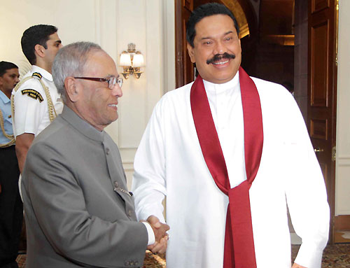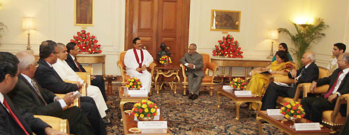 President Mahinda Rajapaksa has called on his Indian counterpart, President Pranab Mukherjee at Rashtrapathi Bhavan on Thursday evening. The president and the Sri Lankan delegation were warmly welcomed by the Indian president.