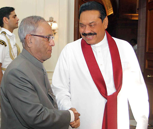 President Rajapaksa held a special meeting with the top Indian leadership. They discussed many key bilateral issues, including South Indian fishermen. India pressed for an expeditious inclusive solution to the ethnic issue and rehabilitation of displaced people. However the two leaders paid profound attention on strengthening bilateral ties between the two nations. The Indian president hailed the rehabilitation and resettlement process and economic growth marked by Sri Lanka. He also praised that massive development activities taking place in the Northern and Eastern provinces. The Indian president noted that de-mining 90 percent of vulnerable lands in war hit areas and completing resettlement process successfully are major achievements of the government of Sri Lanka in a very short period of time. In the backdrop of the recent attacks against Sri Lankans in Tamil Nadu, the Sri Lankan leader, during his meeting with President Mukherjee, also noted that such unfortunate incidents should not be allowed to harm centuries old ties between the two countries. The president also thanked the Indian government for extending helping hand to expedite the country's development initiatives. Minister of External Affairs Prof. G.L Peiris, Parliamentarian Sajin Vaas Gunewardena, Secretary to the President Lalith Weerathunga, Sri Lankan High Commissioner in India Prasad Kariyawasam and Secretary to the External Affairs Ministry, Karunathilaka Amunugama were also present at the occasion. Pix by Nalin Hewapathirana ![]() ![]() ![]()