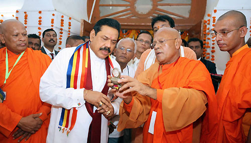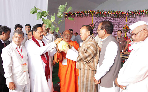 I bring to you, the warm greetings of your brothers and sisters in Sri Lanka. Dear Friends, Over 2300 years ago, it was from this sacred land in Sanchi that your Great Emperor, Asoka sent his son and daughter, Arahat Mahinda and Theri Sanghamitta, to my country. They arrived in Sri Lanka, in peace and friendship. They brought with them, the Message of the Great Teacher, Gautama Buddha – a Message of compassion, non-violence, equanimity, tolerance and understanding. They were received by my ancestors in Sri Lanka with deep reverence. Theri Sanghamitta brought to Sri Lanka, a sapling of the pipal tree in Bodhgaya, under which Prince Siddhartha attained enlightenment as Gautama Buddha, the Two thousand six hundredth anniversary of which we celebrate this year. This sacred tree, accepted as the oldest historically recorded tree in the world, which remains in Anuradhapura in my country, to this day, has been worshipped since the 3rd Century BC. Today I have brought back a sapling of the same tree to be planted in this sacred land for veneration by those who visit Sanchi. In the second week after enlightenment, the Buddha spent seven days in meditation in gratitude to the Bodhi Tree that gave him shelter in his search for the truth of samsara. The deep sense of respect for nature among Buddhists in my country has its roots in this great act of gratitude of the Buddha. It also has an important message in today’s need for protection of the environment and sustainable development. Dear Friends, My journey to Sanchi today, is primarily an act of gratitude on behalf of the people of my country; I am here as a pilgrim, in veneration of sacred Sanchi, saluting and celebrating the glorious past of this region. Honourable Chief Minister of Madhya Pradesh, Shri Shivraj Singh Chouhan, I thank you for inviting me to this sacred land and giving me the honour of participating in the Foundation Laying Ceremony of the ‘Sanchi University of Buddhist and Indic Studies’. By this, you not only honour me but also the people of my country who value the historical bond between Sanchi and Sri Lanka. As you may know, an ever-increasing number of Sri Lankans, at present over 150,000, who visit this sacred region every year, receive the welcoming hospitality of the Government and people of Madhya Pradesh, a state that is hailed as one of the most tranquil in India. Dear Friends, Your great Emperor Asoka, following the teachings of tolerance and understanding of the Buddha, honoured and supported all other religions in his empire. He declared that one should not honour only one’s own religion and condemn the religions of others, but one should honour the faiths of others, as well. I think this message of tolerance and understanding is of great relevance today, as we see the tragic results of enmity and hatred towards other faiths leading to violence and destruction, and great loss to societies. This message of tolerance is of equal importance in the East and West alike. We must recall that the greatest son of modern India – Mahatma Gandhi –, who gave spiritual strength to the freedom movement, was moved by the great values of non-violence, peace and compassion which remain among the core values of our region. I believe it is our duty as well to spread this message further and deeper, both in our own lands and the larger world that is trapped in material-based progress. Dear Friends, On this occasion we must also pay tribute to other great sons of our region for their contribution to the revival of Buddhist and Indic thought, values, and practice both in India and beyond. Anagarika Dharmapala, the well-known Sri Lankan Buddhist sage spent a life-time in India, working on rehabilitation of ancient Buddhist sites of worship. Next year, 2013, will be the 120th Anniversary of his memorable address at the World Parliament of Religions in Chicago, on Buddhism. Anagarika Dharmapala was joined by Swami Vivekananda at the World Parliament who spoke equally eloquently, on Hinduism. We must also honour the memory of Dr. B.R. Ambedkar for his profound contribution to the revival of Buddhist thought in this Land of the Buddha; and for his efforts to incorporate Buddhist and Indic values in the modern day governance systems of India. Dear Friends, This University seeks to follow a unique path in higher education in the pattern of classical Indian Universities, such as Takshila, Nalanda, Vallabhi and Vikramshila. I believe it will focus on the study, research and spread of knowledge of Buddhist thought, in all its rich and varied dimensions. It is more than a coincidence that this happy and auspicious occasion is graced by two heads of Government of two nations in South Asia: Bhutan and Sri Lanka. Both our countries have benefitted from the spark of civilization that came with the dawn of Buddhist practice in our nations. I am very pleased that the Prime Minister of our brotherly nation, Hon. Jigme Yoser Thinley is with me today to share the joy of this occasion. Dear Friends, Today’s conventional education that we have largely inherited from our colonial past often restricts development of the human mind and ignores the relationship between the mind and matters of life. Not only, does it focus on personal gain and ambition, but also gives rise to ruthless competition, and wasteful consumption. It fails to help individuals discover true and lasting values and to build a complete person capable of dealing successfully with life as a whole. Dear Friends, It is our long held tradition that a complete education must involve the awakening of the self and the cultivation of self-knowledge and wisdom and help fashion one’s life for the greater good of humankind. Dear Friends, This University will revive Buddhist and Indic studies based on the ancient concepts of teaching, self-enquiry, and traditional knowledge. It will fulfil a much needed role in our region which is today troubled by the ill-effects of commercialisation, ur