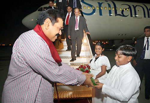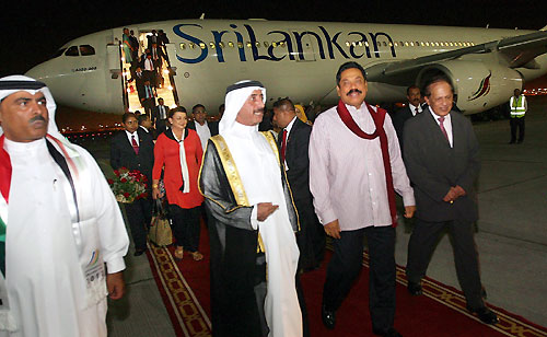 The World Energy Forum was formed in 2008 to use energy for sustainable development without causing environmental damage. So far two conferences of this Forum have been held at the UN headquarters with the participation of leaders of the energy sector and heads of state. This is the first time that this high-level International Energy Conference will be taking place outside the UN headquarters. According to a press release issued by the UAE, the World Energy Forum has chosen Dubai as a venue to host this year’s three day event, because of Dubai’s geographic and strategic location and the political stability of the United Arab Emirates. Its being a global hub for finance, business, trade, tourism and very popular holiday destination in today’s world. Over 2,000 delegates, including 22 Heads of States are expected to attend the World Energy Forum 2012. One of the primary objectives of this conference is to table a road map for a sustainable energy mix that can fuel global economic and social development. The United Nations has designated 2012 as the International Year of Sustainable Energy for All. At the Forum, leaders will seek tangible progress towards cleaner, safer and more sustainable energy as well as achieving universal access to modern energy services. The forum provides a unique opportunity to exchange new ideas on global energy issues from the perspectives of policy, technology, and business. A separate conference of the First Ladies will also be held simultaneously. First Lady Shiranthi Rajapaksa will represent Sri Lanka in that forum. External Affairs Minister Prof. G.L Peiris, MP Sajin Vaas Gunawardena, Western Provincial Councilor Noufer Fouzie and Secretary to the President Lalith Weeratunga are accompanying the President on the visit. Sri Lanka’s Ambassador to the UAE Sarath Wijesinghe, Consul General of Dubai M. Abdul Raheem, UAE government officials and members of the Sri Lanka Embassy were also present to welcome the President and the Sri Lankan delegation at the airport. Pix by: Sudath Silva