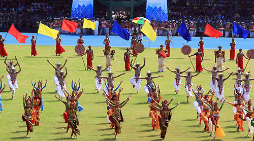 The national function ‘Abhises Abhiman’ to present letters of appointment to trainee graduates who were recruited to government service in 2012 was held under the patronage of the President Mahinda Rajapaksa at Sugathadasa Stadium this morning on 12 January.
