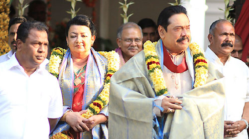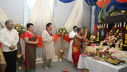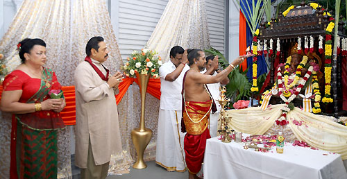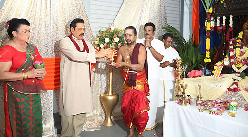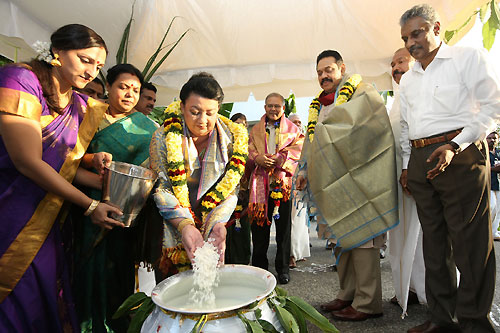 The National Thai Pongal Festival was held on a very grand scale under the patronage of President Mahinda Rajapaksa and First Lady Shiranthi Rajapaksa at the Temple Trees today on 16 January. The celebration area was decorated with flowers and other colourful traditional decorative items and Kolam was also drawn in the premises.