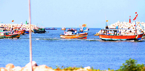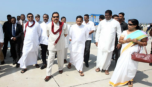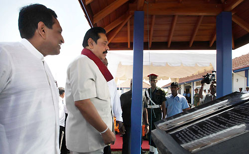 President Mahinda Rajapaksa declared open the Dikkowita Fisheries Harbour constructed at a cost of 850 million rupees this morning on 18 January. It is reportedly the largest fisheries harbour in South Asia situated about 10 kilo metres north of the Capital, Colombo.