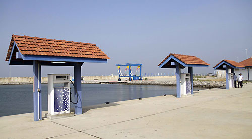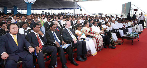 The Dikkowita Fisheries Harbour construction project was commenced in 2008 by BAM International. It has been funded by a soft loan of Euro 43 million from the Government of Netherlands and the residual balance provided by the government of Sri Lanka. The new fishery harbour was constructed to replace inadequate berthing facilities and the infrastructure and services, required for operating the harbour and handling the fish at various locations in the Negombo area. It will also help local fishermen to get to open water without having to negotiate the Hamilton Canal. Fisheries and Aquatic Resources Development Minister Rajitha Senaratne said that this project was planned during President Rajapaksa was the Minister of Fisheries. However it was abandoned due to lack of funds and government support that time. He also said that this harbour will help increase the fish harvest due to efficient handling operations and reduce the sailing distance and waste due to spoilage. The Dikkowita Fisheries Harbour will provide a large number of direct and indirect job opportunities and attract local and foreign investments in fisheries, the minister added. "The fisheries sector is the third most important contributor to economic growth in Sri Lanka. It is second only to agriculture and tourism. That is the main reason the President wanted to kick off this project. According to the ongoing investment and development projects in the industry in post- terrorism Sri Lanka, the fisheries industry will become the main contributor to the economy within the next few years. I hope to provide a 50 percent contribution to Sri Lanka's economy at the end of this year by doubling fish exports" Minister Senaratne said. The harbour has an administration building, auction building, fish processing units, six cool rooms, a ship chandlery, crew quarters/ amenities, a net and glass fiber repair building, a general store with firefighting equipment, a canteen, fuel and water facilities and a slipway. The new harbour is also consisting of two terminals for local and international operations. It is designed to handle a daily catch of 125 metric tons of fish. The port basin of the harbour spans a breadth of approximately one kilometre with two breakwaters and a quay wall. The harbour basin with a depth of more than six meters could berth 500 vessels in both piers. The new harbour stands on an 8.1 hectare area and has 11.7 hectares for the harbour basin. Counselor Bas van Noordenne represented the Embassy of the Kingdom of The Netherlands in Sri Lanka. Ministers Rajitha Senaratne, Basil Rajapaksa, Felix Perera, Sarath Kumara Gunaratne, a large number of politicians, dignitaries, officials and local fishing community were present at the occasion. Pix by: Chandana Perera