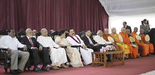 Former Foreign Minister Lakshman Kadirgamar (age 73) died on the 12th of August in 2005 by a Tamil Tiger terrorist (LTTE) sniper attack. He joined politics in 1994 and worked as the foreign minister for two times under President Chandrika Kumaratunga’s People's Alliance and the UPFA governments. As a distinguished lawyer, international humanitarian and a world popular figure, he achieved international prominence in this position due to his wide ranging condemnation of the LTTE and his efforts to have them banned internationally. Speaking at the occasion External Affairs Minister Prof. G.L Peiris recalled the outstanding service discharged by Lakshman Kadirgamar on behalf of the country. He said that late minister rendered a great service against the LTTE terrorism at diplomatic level. He constantly appeared on behalf of the integrity of Sri Lanka and believed that all ethnic groups should live in harmony. Mr. Kadirgamar also showed to the international that there is a clear difference between the expectations of the Tamil community and the LTTE. Kadirgamar, himself an ethnic Tamil, during his tenure as Foreign Minister was instrumental in getting the terrorist organization banned by the United States in 1997. He also massively contributed to ban the LTTE internationally including UK and European Union. He tirelessly worked with the United Nations to make the Wesak Poya Day as an international holiday. The progress report of the Kadirgamar Studies Institute was handed over to the President and the invitees by its Executive Director Asanga Abeygunasekara. The assassinated former Minister’s wife Sugandhi Kadirgamar, family members and relatives were present at the occasion. Members of the Maha Sangha, Ministers Prof. G.L. Peiris, Dinesh Gunawardena, senior minister A.H.M. Fawzy, monitoring MP Sajin Vass Gunawardena, many Parliamentarians, senior officers representing Sri Lanka Armed Forces, foreign diplomats, officials from External Affairs Ministry and Kadirgamar Institute were among the other dignitaries at the ceremony. Pix by: Sudath Silva