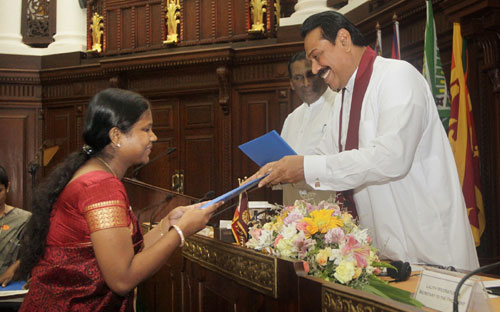 President Mahinda Rajapaksa handed over appointment letters to 43 new administrative officers who completed one year training programme by passing the Sri Lanka Administrative Service (SLAS) Examination conducted in the Tamil medium. A special ceremony was held at the President Secretariat today on 14 August to hand over appointment letters to the recipients. The new appointees will serve in the Northern and Eastern Provinces with a view of uplifting the public administration sector in those regions.