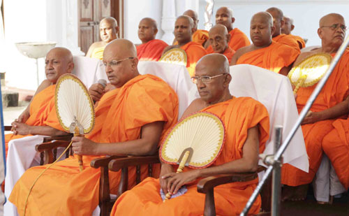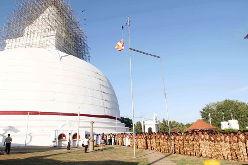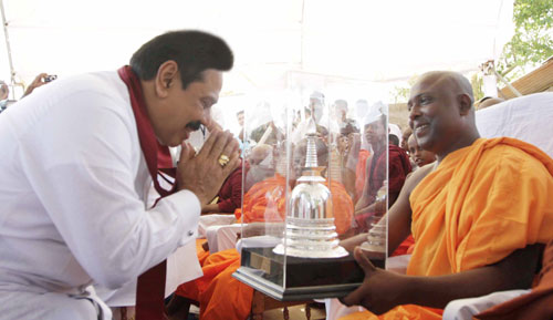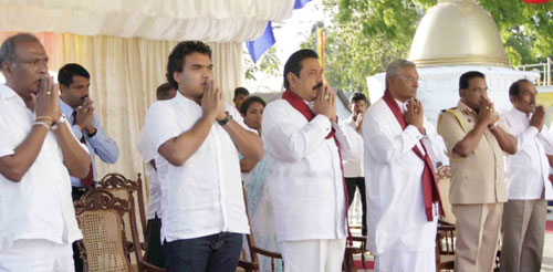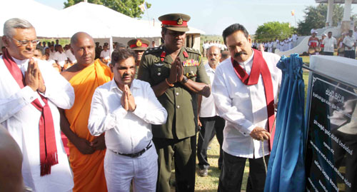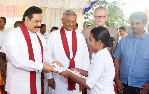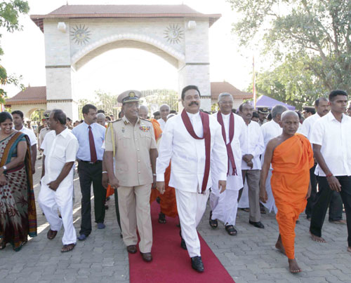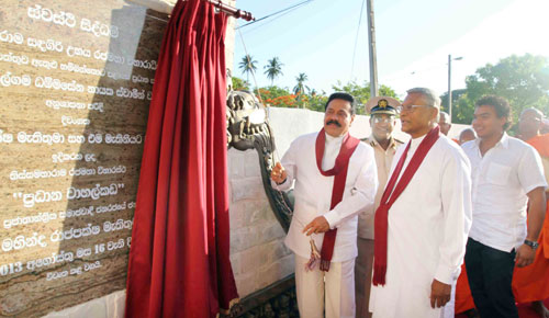 Chief Incumbent of the Viharaya, Venerable Dr. Devalegama Dhammasena Nayaka Thero bestowed blessings on the President and the Rajapaksa family and delivered the main sermon. The President has also presided over a ceremony to hand over certificates to those who have successfully completed courses at the Vocational Training Centre of the Raja Maha Viharaya. President Mahinda Rajapaksa also paid homage to Sri Sumedharama Piriven Viharaya in Nagarawewa, Tissapura in Hambantota. The President participated the ceremony as the Chief Guest to declare open the Bodhi Prakaraya, Shrine Room and Wahalkada at the Piriven Viharaya. The constructions have been carried out by the soldiers of the 12th Battalion of the Sri Lanka Army under the leadership of Brigadier Nandana Senadheera. After the religious observations Chief Incumbent of the Sri Sumedharama Piriven Viharaya, Venerable Panamure Sunanda Nayaka Thero bestowed blessings on the President. A large crowd flocked to the area to witness the both occasions. The President also had cordial discussions with the devotees and locals who visited the temples. Pix By: Nalin Hewapathirana & Nishanka De Silva