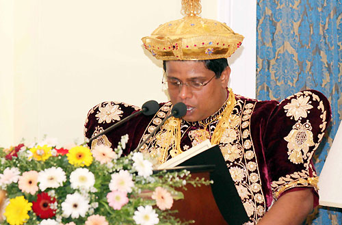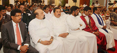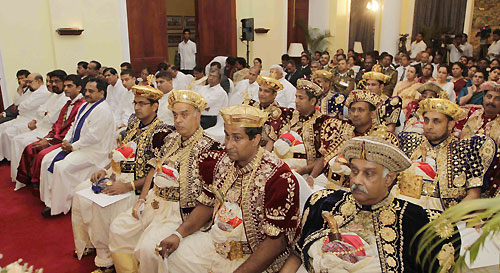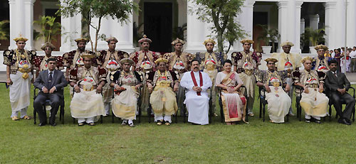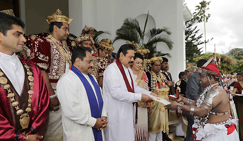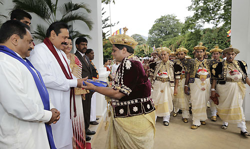 The traditional ceremony to inform the head of the state on the successful completion of the historic Esala Festival took place at the President's House in Kandy in the presence of President Mahinda Rajapaksa this afternoon on 21 August. The Perahera Sannasa (Scroll of Memorandum) on the successful conclusion of the Perahera handed over to President Rajapaksa by the Diyawadana Nilame (Chief Custodian) of the Sri Dalada Maligawa (Temple of the Tooth Relic) Pradeep Nilanga Dela.