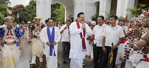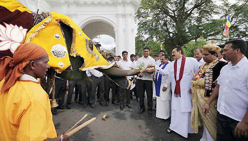 According to the traditions, Diyawadana Nilame accompanied by the Basnayaka Nilames of the main four Devalayas reported to the head of the state of the successful completion of the annual Esala Perahera of the Sri Dalada Maligawa and the four Devalayas just after the Day Perahera. The Sannasa formally announce the end of the Annual Sri Dalada Festival to the President and the Perahera was held successfully in keeping with the age old traditions. President Rajapaksa extended his profound thanks on behalf of the Government and the people of Sri Lanka to all those have involved in the conduct of the Dalada Perahera in such grand splendour and its successful conclusion. The President thereafter handed over the Sannas Pathraya to the secretary to the President Lalith Weeratunga. After handing over the Sannas Pathraya, the President and the Nilames entered the shrine room and made offerings to the Lord Buddha. The President also posed for a group picture with them. The President thereafter gave food to the baby elephants which are belongs to the Dalada Maligawa. A traditional ceremony was held under the patronage of the President to present awards and certificates of appreciation to artistes who participated in the Perahera. The President also presented certificates to the artistes who performed in the Perahera. The once in a lifetime special Presidential award and cash prizes were presented to 5 artistes while 50 outstanding artistes and 20 dance troupes were also presented certificates and cash prizes. Merit certificates were presented to 50 artistes. 115 special artistes were felicitated. First Lady Shiranthi Rajapaksa, Governor of the Central Province Tikiri Kobbekaduwa, Kandy Mayour Mahendra Ratwatte and many distinguish invitees were present at the ceremony. The final Randoli Perahera of the Esala Perahera Festival that centres the Dalada Maligawa paraded the streets magnificently last night on Nikini Full Moon Poya Day. The Perahera returned to the Maligawa after proceeding on Dalada Veediya, D.S. Senanayake Veediya and Raja Veediya. President Rajapaksa, First Lady Shiranthi Rajapaksa, Japanese and Thai princesses and other dignitaries were among the guests of honour to witness the Perahera last night. The water cutting ceremony was held in the Mahaweli River at Getambe at the auspicious time in the early hours this morning. The water cutting ceremony of the Natha, Pattini, Vishnu and Kataragama Devalas was held at dawn today. A large number of people thronged the location to seek blessings. The Perahera of the four Devalas was welcomed at the Heerassagala Bodhiya. The people who participated in the procession were served with refreshments. Members of the Maha Sangha led by Maha Nayaka of the Asgiriya Chapter Most Ven. Udugama Sri Buddharakkhitha Nayaka Thera and Anunayake of the Malwatta Chapter Most Ven. Niyangoda Wijithasiri Thera were also present. The afternoon procession was also held making the conclusion of the festival. A notable feature was the large number of foreigners who were present. Sri Dalada Maligawa correspondent says the largest crowd ever to have witnessed the Kandy Esala Perahara, was recorded last night. The final Randoli Perahera was telecasted worldwide live via a special streamline connected to the Sri Dalada Maligawa official website. Pix by: Sudath Silva