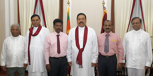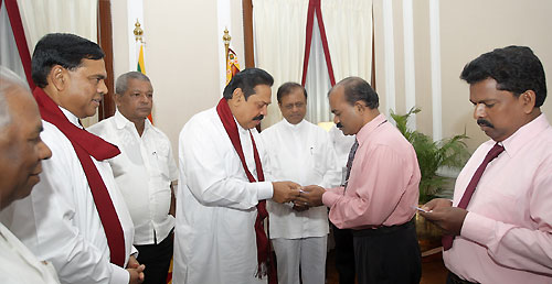 Vice Chairman of the Wadamarachchi Pradeshiya Sabha E. Santhasorupan and Vice Chairman of the Point Pedro Pradeshiya Sabha M. Logasinhem met President Mahinda Rajapaksa and pledged their support to the government today on 22 August. Both Tamil provincial leaders are representatives of Tamil National Alliance (TNA) from Jaffna Peninsula. They have crossed over to the United People’s Freedom Alliance (UPFA) and extended support to the government and became members of the Sri Lanka Freedom Party (SLFP) during the meeting with the President at Temple Trees.