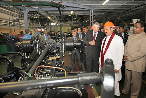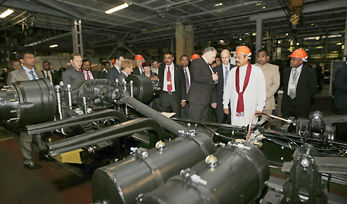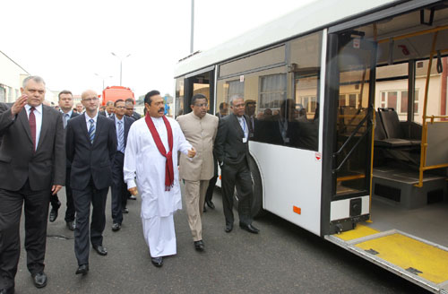President Mahinda Rajapaksa visited the Minsk Automobile Plant for an inspection tour at the conclusion of his three-day state visit to the Belarus Republic, the former Soviet Union country in Eastern Europe on 27 August. Minsk Automobile Plant is highly established industrial plant where high quality passenger buses, trucks and lorries are manufactured for both local and export markets.
