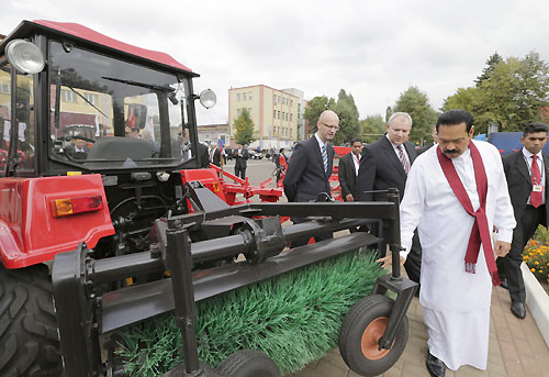President Rajapaksa inspects agricultural machineries at Minsk Automobile Plant