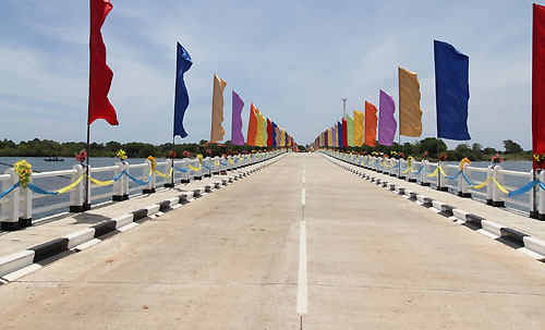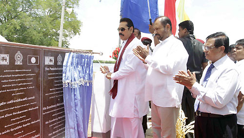 This bridge was destroyed by the Tsunami disaster in 2004. The new bridge constructed at a cost of 1,060 million rupees. The bridge, which is 132 metres in length and 10.4 metres wide, has been constructed utilising local funds and 769 million rupees granted by the Japanese government. In line with the construction of the bridge, a new causeway with an average length of 207 metres has also been constructed on either side of the bridge to access to the new bridge. Constructing this new bridge under the “Nagenahira Novodaya ((Reawakening of the East)” fulfills another pledge in the “Mahinda Chintana” to build the new bridge in place of the old bridge, which will directly benefit the public in the area. It also fulfills a long felt need of the people in the area. Addressing the opening ceremony President Mahinda Rajapaksa said the government's main objective is to build up a peaceful country in which all communities will be able to live in harmony as children of one mother. The government is also committed to secure the democratic rights of the people and create a unitary and peaceful country for the future generations. The President further stated that it is government’s responsibility to renovate roads, bridges, schools, hospitals and religious places destroyed by both the Tsunami disaster and the terrorism and vested with the public to connect all the communities. Meanwhile President Mahinda Rajapaksa inspected a number of projects in the Eastern Province and vested many development projects in the public. Project Minister Nirmala Kotalawala, Deputy Ministers M.L.A.M. Hisbullah, Vinayagamurthi Muralidharan, Governor of the Eastern Province Mohan Wijewickrama and Chief Minister Najib A. Majid were amongst the dignitaries who participated in the occasion. Pix By : Nalin Hewapathirana