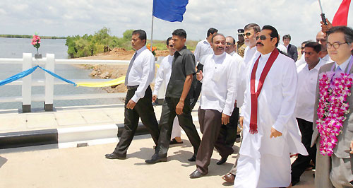 President Mahinda Rajapaksa declared open the newly constructed Panichchankarni Bridge located on A15, Batticaloa- Trincomalee road in Wakarai yesterday (August 01).