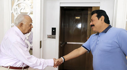 A special discussion between President Mahinda Rajapaksa and Tamil National Alliance (TNA) Leader R. Sampanthan was held at President’s House today on 04 October. The meeting between the two leaders took place this morning at 8.30 am and the pair last met in July this year to talk about the parliamentary select committees. The intention of the today’s meeting was to discuss about the swearing in of Northern Province Chief Minister C.V. Wigneshwaran who was elected in the recently held PC elections. Secretary to the President Lalith Weeratunga was present at the occasion. Meanwhile TNA is also having a special meeting in Colombo on the final arrangements of the sworn in ceremony for the newly elected Northern Provincial Council Chief Minister, council members and the naming of the PC ministers. Sources close to the party informed that the heads of all the TNA coalitions and parliamentarians are participating in the discussion. However some coalition members of the TNA have criticised and expressed their unwillingness to allow its Chief Minister to be sworn in before the Northern Province’s Governor and retired Major General G.A. Chandrasiri since the TNA captured 28 seats and two bonus seats (total 30 seats) in the 38 seat Northern PC. Therefore the sources said they have decided to invite President Rajapaksa to Jaffna to administer the oath of office to the country’s first Chief Minister of the North in a gesture of goodwill. Former Supreme Court judge C.V. Vigneswaran obtained the highest preference votes in the Jaffna District with a total of 132,255 votes, and was unanimously selected to the post in a post- election meeting by the 28 TNA candidates who were elected for the Northern Provincial Council. However former judge Vigneswaran received his letter of appointment as the Northern Province Chief Minister from the Governor of the Province Major General (retd) G.A. Chandrasiri at the Governor’s office in Jaffna on last Tuesday (01 Oct). Pix by: Sudath Silva comments powered by Disqus |