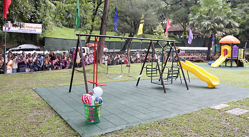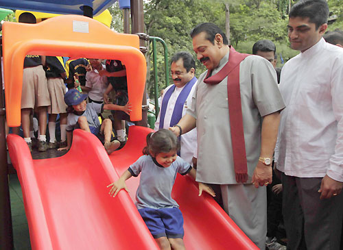 President Mahinda Rajapaksa opened the renovated E.L.Senanayake Children’s Park in the city of Kandy recently. It is the first urban children’s park and one of the oldest situated at the Ampitiya junction along the Kandy Lake Round Road. This children’s park which was built in 1969 named in honour of E.L.Senanayake, former Mayour of Kandy and prominent Sri Lankan politician.