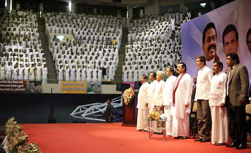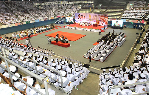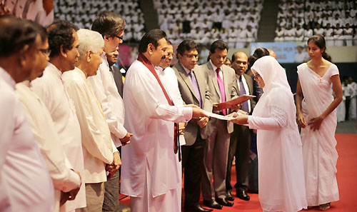 The appointment letters handing over ceremony for the recruitment and training health service personnel to constitute an efficient and comprehensive health service with advanced human resources took place under the patronage of President Rajapaksa. The President officially handed over the appointment letters to personnel representative of all Provinces in the country. This is the first time in recent history that such a large number of personnel are being recruited to the health service. 6500 were recruited for nurses’ training while 1900 those who completed training were recruited to the Nursing Service. Another 2000 were recruited for paramedic services across 14 grades. In addition to this, 281 Vidya Peeta Graduates also collected their appointment letters at the ceremony. Further expressing his views, the President emphasised that Sri Lanka is leading in the Health indices not only in South Asia but also in the entire Asian region. A fully-fledged hospital network has been built covering all the districts. Therefore a massive number of recruitments had been made into the health sector during the past period. It is a two-fold increase in comparison with the recruitments made before the present government assumed power. The allocation made by the government for the ‘Free Health Service’ in the budget is a four-fold increase when compared to the allocation made in the 2005 budget. The President pointed out that this amounted to Rupees 155 billion. Therefore the President was optimistic that these new recruits would be totally dedicated to their service. If they acted as exemplified by Florence Nightingale, the President pointed out that they could be satisfied in having fulfilled their responsibility. Addressing the ceremony Minister of Health, Maithripala Sirisena described the event as a historic occasion and a revolution in the health sector. Sri Lanka has maintained a high standard in the field of healthcare, hence the Minister said that he expects every recruit to discharge their duties to the maximum treating all patients alike. Fully equipped hospital network has been built covering all districts. Quality of these hospitals is higher compared to the past. Some contagious diseases have been eliminated from the island. It is a great victory achieved by the health service. Minister Sirisena further told the gathering that World Health Organisation (WHO) and many other leading health related international organisations have conferred many awards to Sri Lanka Health Service as one of the best health services in Asia and the country had been able achieve this status due to their services. President of the Public Service United Health Union, Ven. Muruttettuwe Ananda Thera, Deputy Minister Lalith Dissanayake, Secretary to the Health Ministry Dr Nihal Jayathilaka, Director General P.G.Mahipala and Ministry officials were among the large gathering present. With the new appointments, country's nursing cadre in the state sector will be increased to 36,000 personnel and the Ministry expects to increase that number to 50,000. Meanwhile a new batch of 17,000 nurses will be admitted to the nursing schools throughout the country. However, a health sector trade union recently alleged that the government has decided to reduce the number of nurses in the state hospitals to 20,500. Meanwhile in Jaffna, the protest carried out by 240 temporary workers who are currently employed by the Jaffna Hospital calling on officials to recruit them into the permanent staff entered its fifth day on Tuesday. These demonstrators had been recruited as temporary workers to the Jaffna Teaching Hospital five years ago. Pix By: Sudath Silva