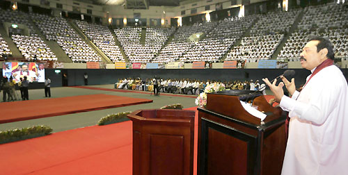 President Mahinda Rajapaksa said that his government has established the Golden Era of the "Free Health Service" and honoured the pledges enthroned in the “Mahinda Chinthana- Bright Future” to protect the Health Service. He made these remarks at the ceremony organised by the Ministry of Health to hand over letters of appointment to 10,400 health service personnel at the Sugathadasa Indoor Stadium on Tuesday 17 December.