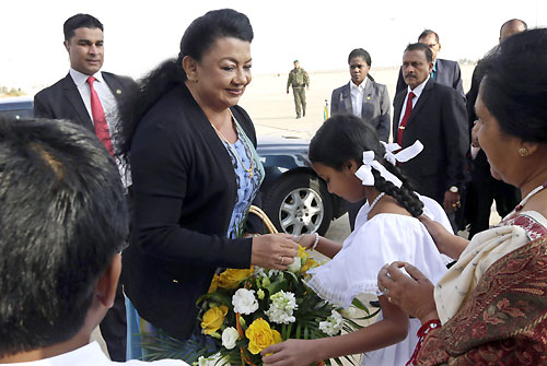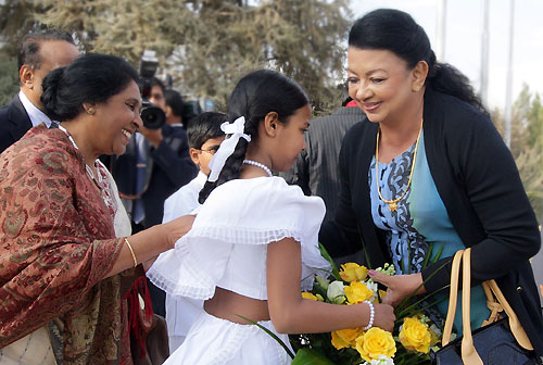 President Rajapaksa accompanied by First Lady Shiranthi Rajapaksa arrived at the Queen Alia International Airport in Amman, Jordan, the first stop of the tour on Saturday afternoon, beginning a two-day state visit. The President and the First Lady were warmly received on arrival at the air port by two Sri Lankan children living in Jordan. Representing the Hashemite Kingdom of Jordan, Acting Secretary-General of Jordan’s Ministry of Foreign Affairs, Mohammad Taisir and the Director of the Asian Department of the Ministry of Foreign Affairs, Zuhair Ensouk were present at the air port to welcome President Rajapaksa. The President is scheduled to hold bilateral talks with the king of Jordan, His Majesty King Abdullah Ibin Al- Hussein during his two day visit to the Arab Kingdom in the Middle East. Thereafter President Rajapaksa will travel to Palestine on a two-day state visit (07th and 08th January) and will hold bilateral discussions with Palestinian President Mahmoud Abbas and Prime Minister Rami Hamdallah. This will be the first visit of a Sri Lankan Head of State to the State of Palestine. In Palestine, President Rajapaksa will pay floral tributes to his late friend, former President Yasser Arafat’s mausoleum. He will also meet members of the Sri Lanka Palestine Friendship Association which he was also a former President and will visit the Holy Church of the Nativity in Bethlehem. Thereafter the President will make a two-day state visit to Israel, the final destination of the Middle East tour where he is slated to hold talks with Israeli President Shimon Peres and Prime Minister Benjamin Netanyahu. The president will be visiting Palestine on the 09th and 10th of this month. The Sri Lankan delegation is expected to hold discussions with the representatives of each country on strengthening bilateral relations in the agriculture, tourism, trade and employment sectors during the Middle East tour. First Lady Shiranthi Rajapaksa, Minister of External Affairs Prof. G.L. Peiris, Monitoring MP of the Ministry of External Affairs, Sajin de Vass Gunawardena, Parliamentarians Mrs. Kamala Ranatunga, Roshan Ranasinghe and John Amaratunga, Secretary to the President, Lalith Weeratunga and Sri Lanka’s Ambassador in Jordan, Gamini Rajapaksa are a part of the delegation accompanying the President. Photos by: Sudath Silva