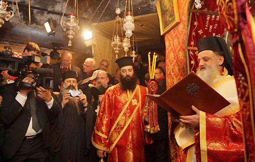 The vicinity of the Church of the Nativity in Bethlehem, the traditional birthplace of Jesus was illuminated for the celebration of the Eastern Orthodox Christmas, which takes place on Tuesday. Most Eastern Orthodox Christian denominations celebrate the birth of Jesus Christ on January 7th, in contrast to the Western Christian tradition of celebrating on December 25. The compound of the Church of the Nativity in Bethlehem is decorated for the celebration of the Eastern Orthodox Christmas festivities. Orthodox Christian Priests and clergymen prayed in the Grotto. President Mahinda Rajapaksa, First Lady Shiranthi Rajapaksa, Palestinian President Dr. Mahmoud Abbas also attended the Mass of the Christmas Eve at the Church of the Nativity. Meanwhile Mrs Shiranthi Rajapaksa, together with Parliamentarian Kamala Ranatunge and some members of the Sri Lankan delegation in Palestine visited Jewish and Christian religious sites in Palestine. The places visited included Mount Sinai in which Prophet Moses entered to a pact with God, the location at Jordan river in which Jesus Christ was baptized and the Church of Nativity in Bethlehem. Photos by: Sudath Silva