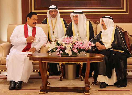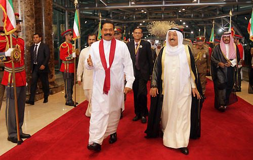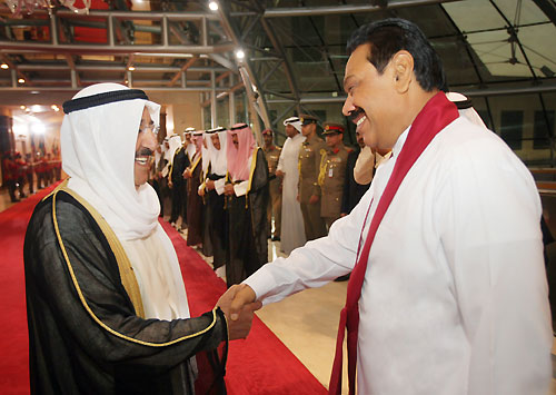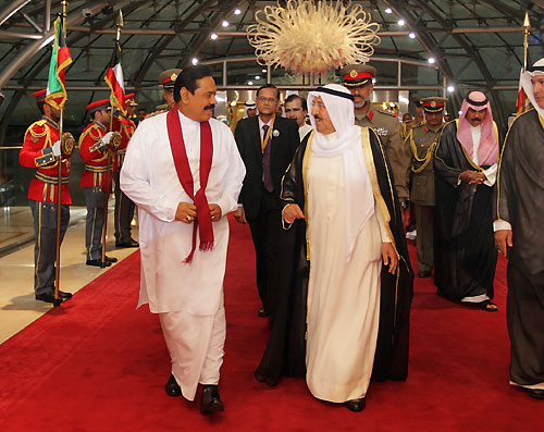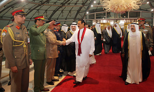 President Mahinda Rajapaksa arrived in Kuwait to attend the First Asia Cooperation Dialogue (ACD) Summit today on 15 September. Sri Lankan President was warmly received by the Amir of Kuwait Sheikh Sabah Al-Ahmad Al-Jaber Al-Sabah at Amiri International Airport in Kuwait.