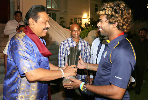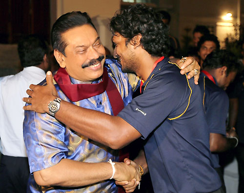 President Mahinda Rajapaksa felicitated the ICC WorldT20 Cricket Cup winning Sri Lankan national team at the Temple Trees on Tuesday night (08 April).