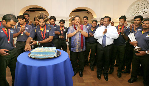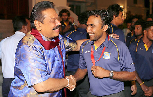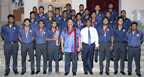 Congratulating the members of the team the President thanked them for bringing honour, glory and fame to the motherland. President Rajapaksa also told the team that he was proud of all of them and that he and all cricket lovers in the country were happy with the great performance of the national team.
