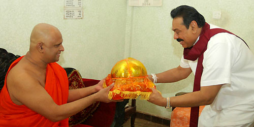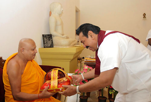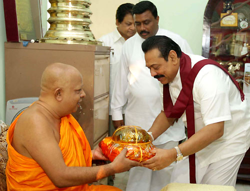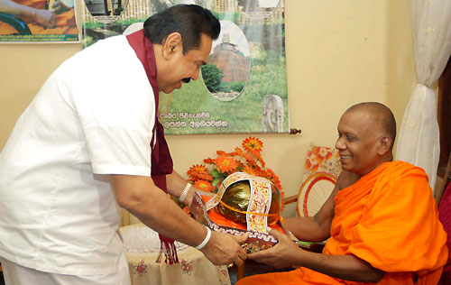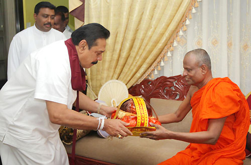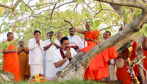 President Mahinda Rajapaksa paid obeisance to the historic Jaya Sri Mahabodhi and obtained blessings for the New Year this morning on 18 April.