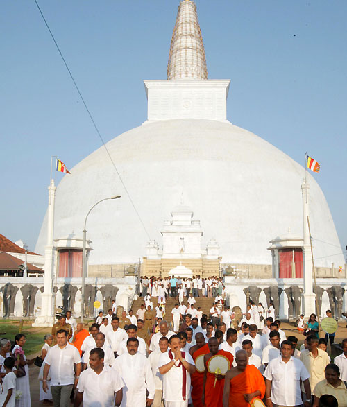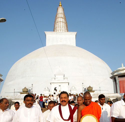 The President thereafter called on the Chief Incumbent of the Atamasthana, the Ven. Dr. Pallegama Sirinivasa Nayaka Thera and received his blessings. Subsequently, he joined the religious observances held beneath the Ruwanweli Maha Seya. The President who called on the Chief Incumbent of the Ruwanweliseya the Ven. Pallegama Hemarathana Thera exchanged pleasantries with him. The prelate chanted Seth Pirith and blessed the President. He did not forget to exchange pleasantries with devotees who were present at the Anuradhapura Sacred site to obtain blessings for the New Year. President Rajapaksa also visited the Mirisawetiya Raja Maha Viharaya and paid obeisance there. He then paid a courtesy call on the Chief Incumbent, the Ven. Ethalawetunuwewe Gnanathilaka Nayaka Thera and inquired into his wellbeing. In the meantime, President Rajapaksa who visited the Sri Sambuddha Jayanthi Viharaya in Anuradhapura last evening called on its Chief Incumbent the Ven. Nugathenne Pagnananda Thera and secured his blessings. He also visited the Lankarama Viharaya and called on its Chief Incumbent the Ven. Ralapanawe Dhammajothi Thera who too blessed the President. Pix by: Chandana Perera
