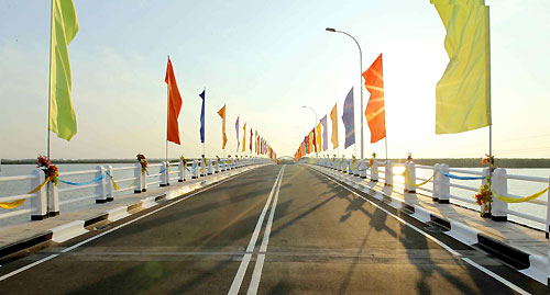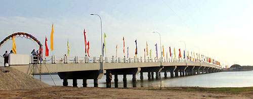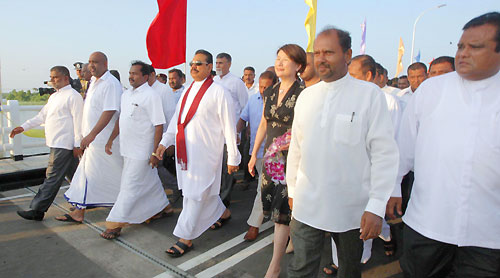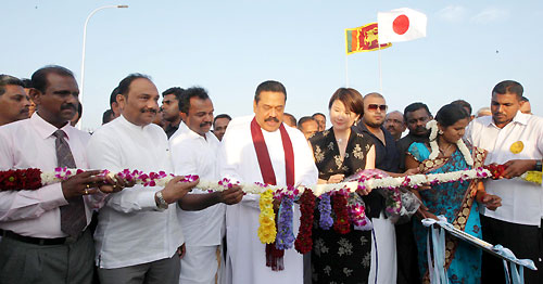 President Mahinda Rajapaksa declared open the newly constructed Manmunai Bridge in Batticaloa this afternoon (19 April) marking another milestone in the country’s development. It connects the Batticaloa and Ampara Districts. This new bridge across Batticaloa lagoon on Colombo-Batticaloa A4 road via Pothuvil has been constructed at a cost of 1,870 million rupees fulfilling a long felt need of the people in the Eastern Province.